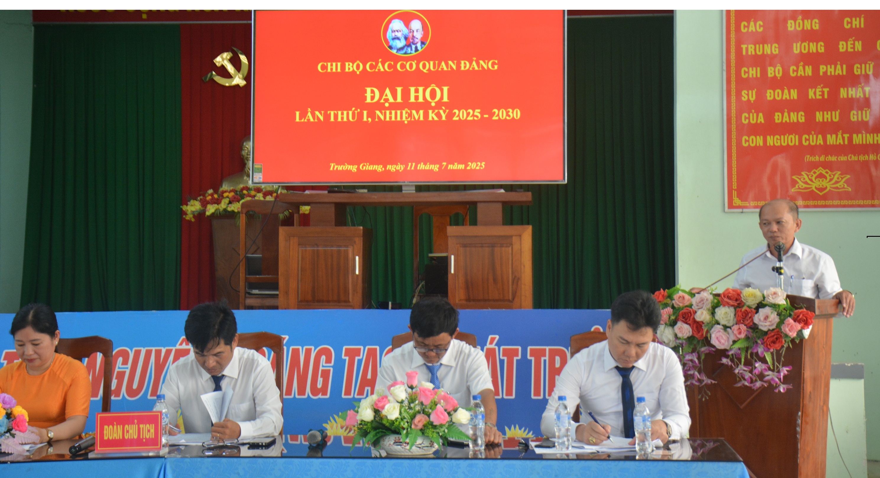 Đại hội lần thứ I, nhiệm kỳ 2025 – 2030 của Chi bộ các cơ quan Đảng xã Trường Giang Với chủ đề “Đoàn kết – Dân chủ – Kỷ cương – Phát triển”. Xác định mục tiêu, chỉ tiêu, giải pháp và phương hướng nhiệm vụ: Nâng cao năng lực lãnh đạo, sức chiến đấu của chi bộ, tiếp tục xây dựng chi bộ các cơ quan Đảng thật sự trong sạch vững mạnh; Tiếp tục thực hiện có hiệu quả việc học tập và làm theo tấm gương, tư tưởng, đạo đức, phong cách Hồ Chí Minh; Nâng cao hiệu quả công tác tham mưu, kiểm tra, giám sát và kỷ luật đảng góp phần thực hiện thắng lợi nghị quyết Đại hội Đảng bộ xã Trường Giang nhiệm kỳ 2025–2030.